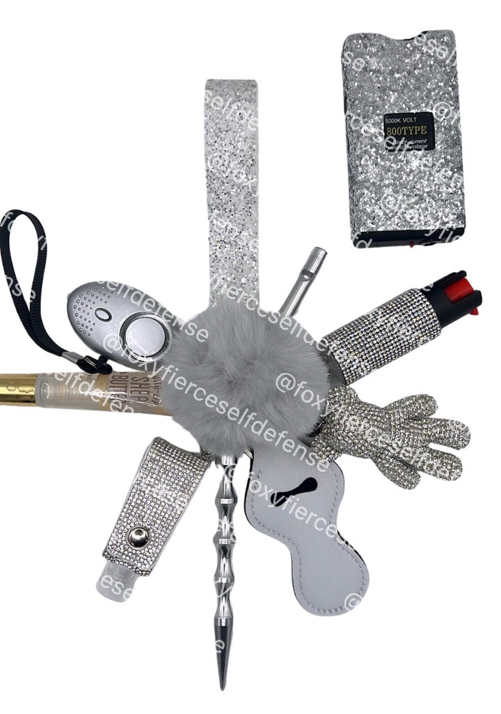 Patron wristlet provides all the essential items you need for safety on the go. Handmade with a flashlight and alarm, plus a Chapstick holder and included Chapstick, it also comes with an optional pepper spray, lip gloss, kubaton, emergency whistle, hand sanitizer, and a bling bear charm. Keep yourself secure with Patron.