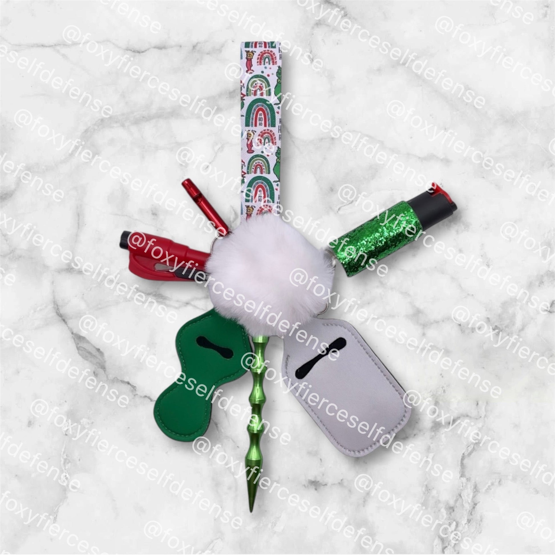 Say goodbye to holiday stress with Wonderville Christmas. This handmade wristlet offers complete protection with its included kubaton, pepper spray, hand sanitizer holder, emergency whistle, seat belt cutter/window breaker and chapstick holder. Get the ultimate peace of mind this Christmas.